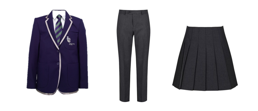 - Grey school trousers (not leggings, tight fitted trousers or jeans).